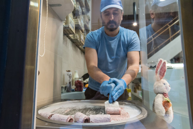 This recent chocolaterie prepares ice cream just like in Singapore. On a freezing pan at a temperature of -22°C, you pour any ingredient you may want (biscuits, fruits, coffee, and some of the world’s best chocolates), and you leave the rest to the pros. They’ll throw in their secret mixture of fresh milk and start the process. They blend and mince the mixture while it freezes and lay it in strips which are then rolled into small cylinders, put in a cup and served. Coe see what real ice cream tastes like and be prepared to lose your footing.