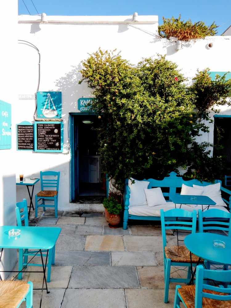 Stou Stratou is by far the pace where everything begins and concludes. What I always like to do is to wake up relatively early and head up to Chora for a generous breakfast before hitting the beach. The sun doesn't hit the square until mid-day, and if by any chance it does you can always retreat to the small patio labelled with a sign "a la place".