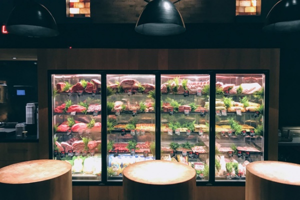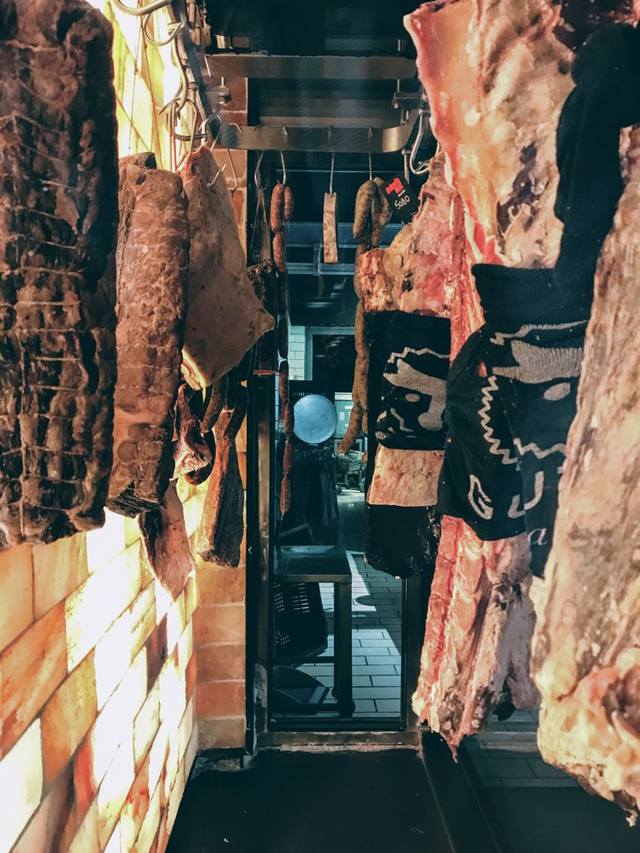 Surely when you first enter the Drakoulis Meat Open Project Cellar shop in Voula you're astounded by the dark (almost pitch-black) surroundings, the loud music and the clean-cut atmosphere. Transparent glass carefully lit fridges stack all various prime cuts in a neat order, displaying the very best of fine meat such as Kobe, Tomahawk and Black Angus.