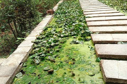 Walking along the cobbled paths shaded by tall bamboo, visitors find themselves under a cool canopy where sunlight filters softly through the slender leaves.