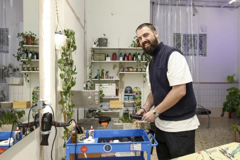"I noticed there was room in the wider Zografou area for a modern, alternative barbershop, and at the same time, a lot of underutilized space along Papadiamantopoulou. So, I discovered a warehouse that had been closed for 14 years and decided to transform it into a barbershop, maintaining the original character of the venue -with joints that evoke Eastern Germany, luxurious mirrors that contrast with the raw, makeshift style, and a name inspired by the famous Japanese anime One Piece”.
