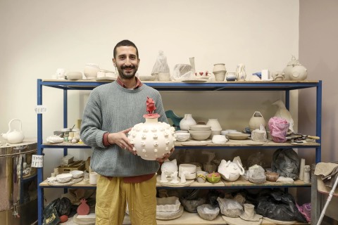 "I hadn’t known Papadiamantopoulou before, but I was searching for a spacious spot with a large window display. When I found this abandoned space, in disrepair, I poured my effort into transforming it to something new. What truly touched me was the joy of the neighborhood residents when they saw it come to life again, as something fresh and different. Given that there are only a few businesses around here, people quickly got to know me through word of mouth. The majority of those interested are people around 30, with a larger proportion of women eager to learn ceramics. They come to create on the wheel and to explore hand-building pottery. Because Papadiamantopoulou is a street devoid of greenery and burdened with noise, our studio serves as a small oasis, offering a place for people to unwind, to be creative, and to find peace. I truly hope more artistic spaces will open in the area, with workshops for painting, printmaking, and other forms of art”.