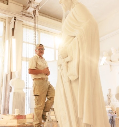 “To make a statue, you don’t start with marble. First there’s clay, then a plaster mold, then the transfer to marble,” they explain. “Each stage has its secrets. During Covid, we worked nonstop and created the ‘Glory of Psara’—five tons of solid marble. When we finished, it was transported and installed at the island’s port.”