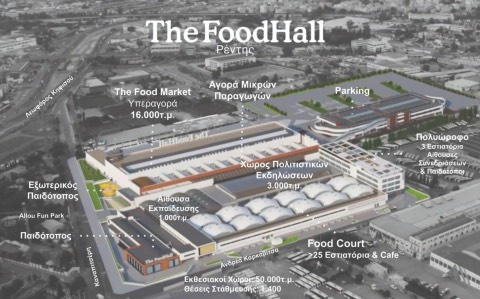 Interventions will respect the historical identity of the area, including consideration of preserving the iconic Pitsos signage, while a small museum space, under the supervision of the Ephorate of Modern Monuments, will narrate the factory’s history. The complex will include a two-level hypermarket, 25 dining venues, an organized market for small producers, leisure areas, office buildings, indoor and outdoor playgrounds, a multi-story building with conference rooms and rooftop restaurants, and a large, light-filled multifunctional space hosting exhibitions, seasonal markets, artistic events, and pop-up happenings.
