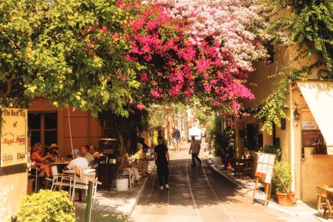 Nestled beneath the Acropolis, Anafiotika is a hidden gem: whitewashed houses, vivid shutters, and bougainvillea-filled alleys conjure up the charm of the Cyclades right in the heart of the city.