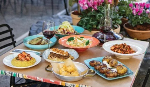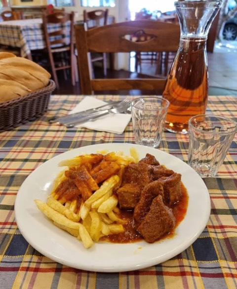 There’s no table more “Sunday” than the one set by the Konstantopoulou family. It feels like stepping into your mother’s dining room, waiting for the giouvetsi to come out of the oven. If the sun is out, sit in the courtyard and dig into their homemade pastitsio, melt-in-your-mouth beef cheeks in tomato sauce, plump meatballs, and definitely the cheese-and-pastourma pie (pitaraki).