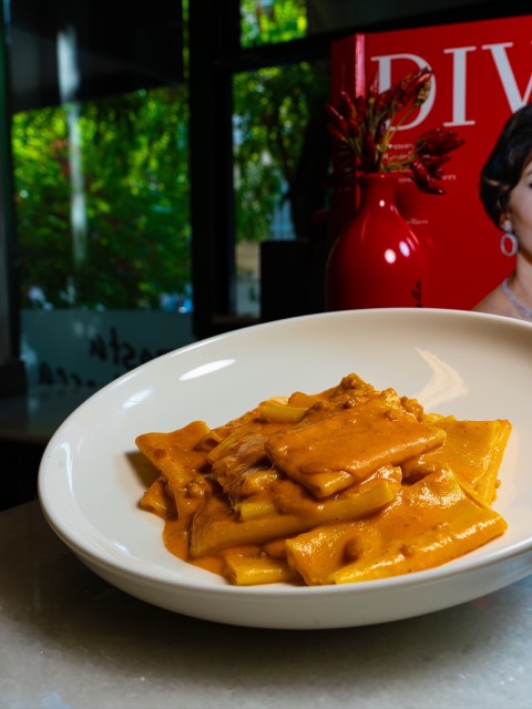 Located on the quiet Plutarchou Street in Kolonaki, Via Della Pasta offers an authentic Italian experience that stands out for its flavor, simplicity, and quality. The space resembles a traditional Italian trattoria: wooden tables, shelves filled with cookbooks, and an atmosphere that invites you to sit down and relax without hurry. The menu is based on fresh, handmade pasta and carefully selected ingredients. Highlights include the pappardelle with shrimp and zucchini, paccheri with gorgonzola and guanciale, as well as the all-time classic fettuccine alla bolognese.