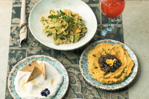 Modern Greek cuisine with a view of the Acropolis and live Greek music
