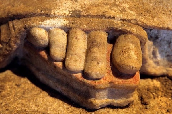 Amphipolis Tomb: Caryatids marble base fully uncovered