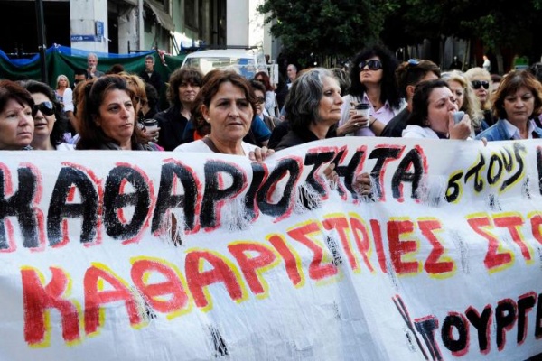 Dismissed cleaners continue protest outside Ministry of Finance