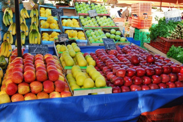 Open air greengrocers hand out produce